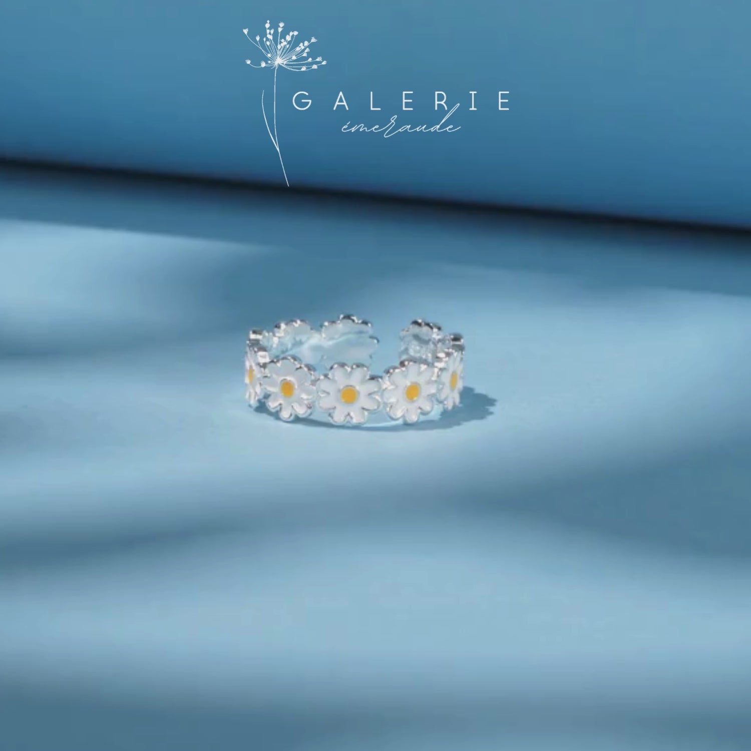 Bague Argent Femme, Bague paquerette réglable, modèle marguerite