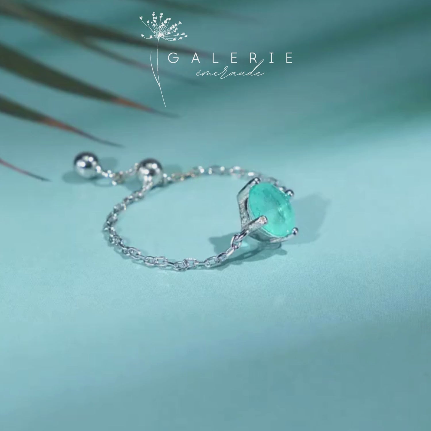 Bague Argent Femme, bague chaîne réglable tourmaline, modèle Alae