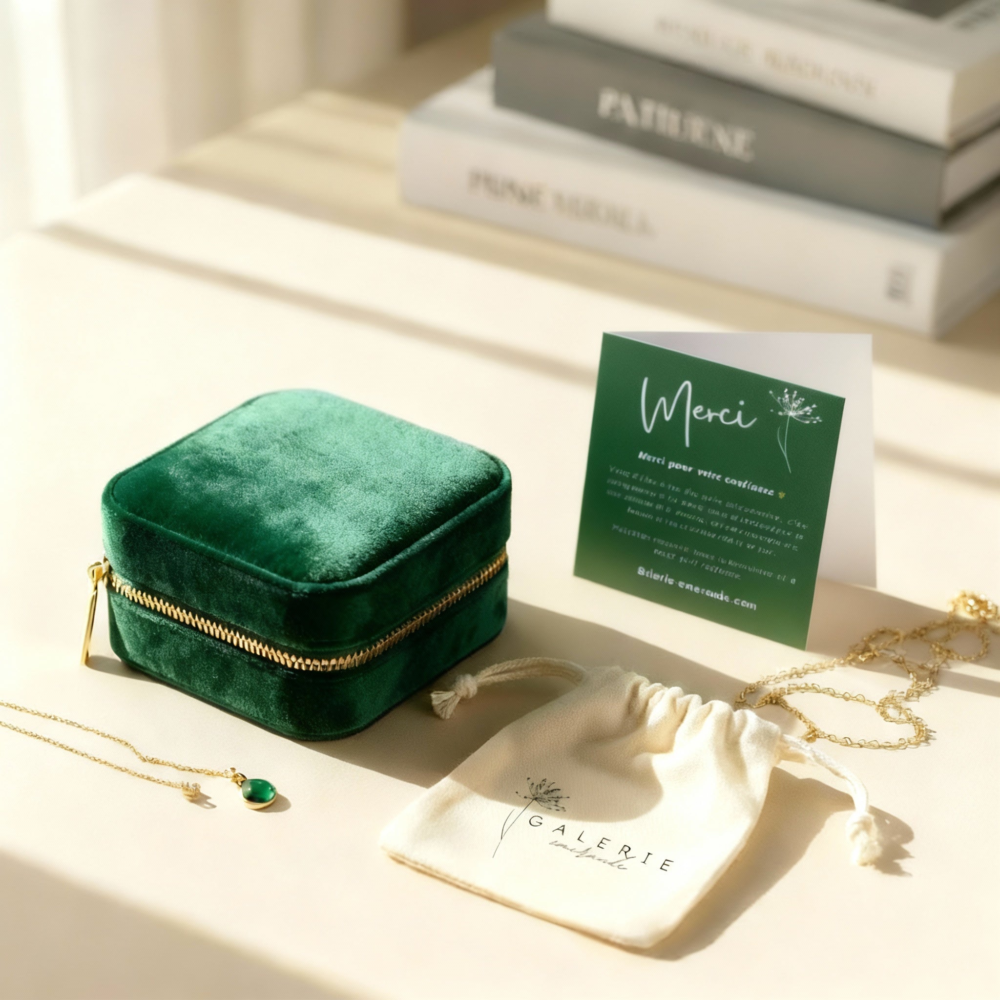 Pour plusieurs bijoux commandés, chacun sera délicatement glissé dans sa propre pochette avant d'être placé dans le coffret.